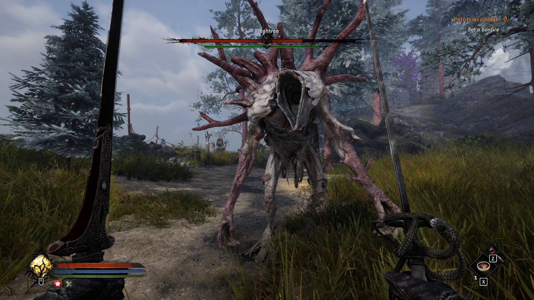 Așa cum ziceam, primele gameplay videos cu Tainted Grail nu m-au impresionat prea tare. Niște lupte cu scheleți, niscai buzdugane, un decor arthurian, combat din deal de Windhelm… meh, mi-am zis, niște Elder Scrolls turnat sifon peste o tămâioasă de Dark Souls. Și la prima vedere cam asta e.