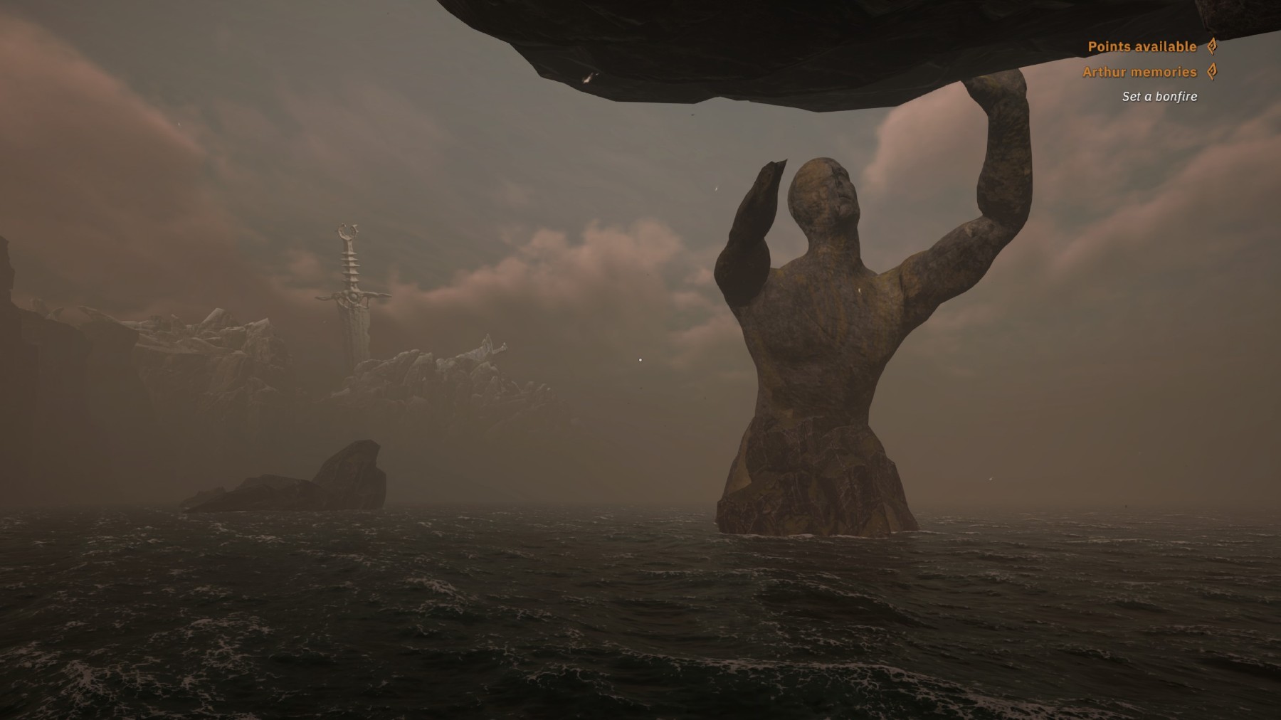Jocul expune numeroase astfel de scenografii imaginare, plasând prin ruine numeroase questuri, notițe și mici activități, neobosindu-se să îți explice fiecare loc sau să îi dea un nume. Astfel, printr-o combinație ciudată de AA game-dev standards și omisiuni intenționate, lumea jocului pare suficient de populată și suficient de goală încât jucătorul să se simtă adesea ca o fantomă ce o bântuie, sentiment amplificat și de amintirile regelui Arthur ivindu-se (în chip neintruziv) la focurile de tabără.