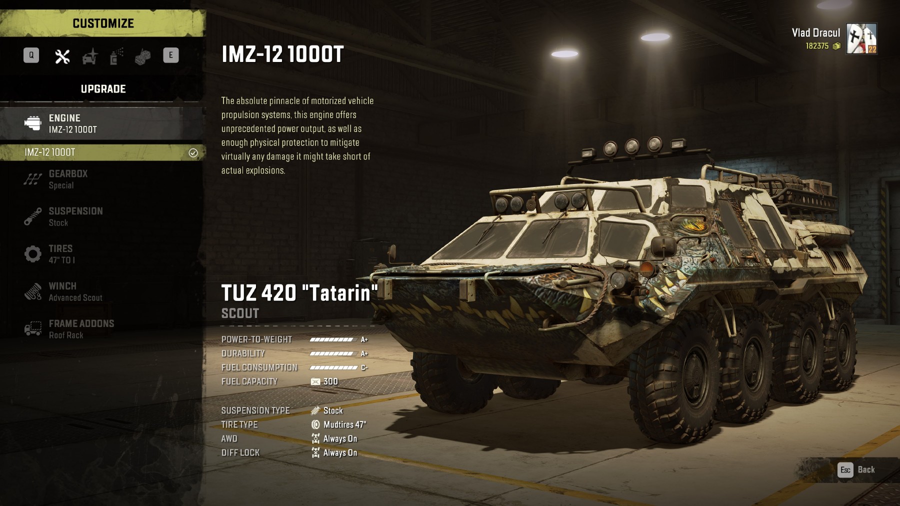 Un upgrade absolut vital pentru scouts e faimosul Autonomous Scout winch, care, în ciuda faptului că nu-i deloc ieftin, trebuie instalat de îndată ce se deblochează accesul la el, acesta reprezentând atât un „game-changer” cât și un „life saver”. Ce face troliul respectiv? Păi în momentul în care te răstorni, motorul are prostul obicei de a se cala, iar dacă ai instalat un troliu obișnuit, mașina îți rămâne acolo, ca o broască moartă pe marginea drumului. Singurele opțiuni de remediere a situației fiind ori să dai Recover (care costă exagerat de mult în Hard Mode), ori să trimiți o altă mașină s-o repună pe picio… ahem, roți, numai că dacă ești într-o zonă foarte dificilă, să nu te mire faptul că salvatorul va eșua lamentabil și vei fi nevoit să faci operațiune de salvare la operațiunea de salvare. „Pățăști”, în jocul ăsta chiar pățăști, mai ales în Hard Mode.