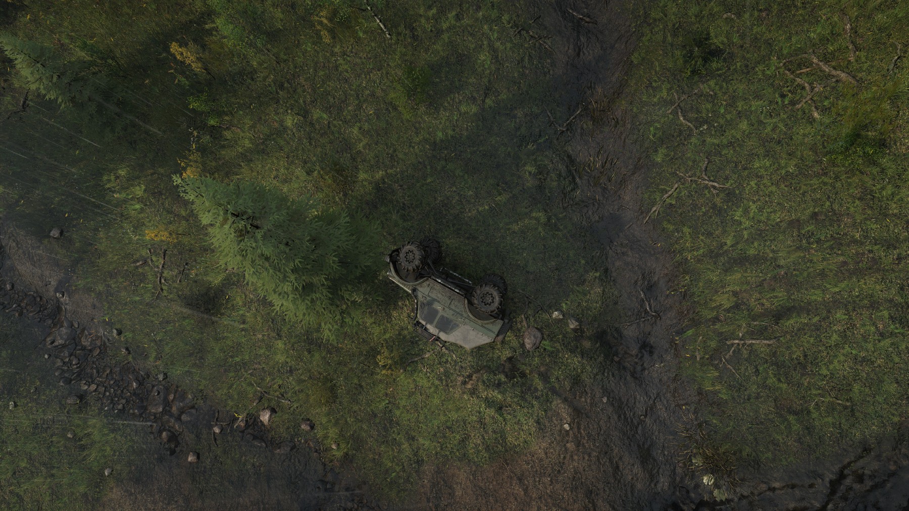 Atenție și la copacii căzuți sau pietrele de pe drum, care ar părea inofensive la o primă vedere, dar poți încasa destul damage dacă treci cu viteză prea mare peste ele. La fel în privința trunchiurilor tăiate de copaci, care reprezintă adevărate capcane ascunse prin iarbă, iar coliziunea cu parapetul de metal de pe marginea drumului poate avea drept consecință un teribil dezastru, anvelope distruse (există și un nedorit achievement în acest sens, dacă reușești să conduci un kilometru cu pană la toate cauciucurile) și daune la motor sau suspensie.