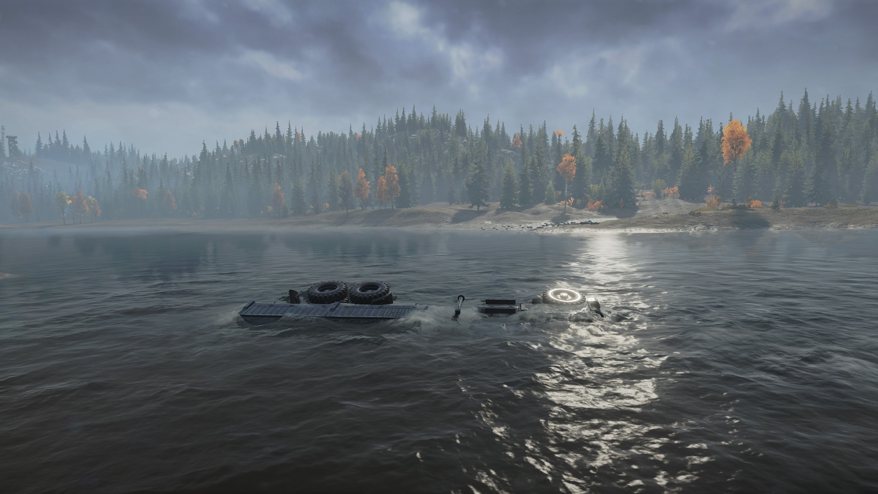 De asemenea, e absolut crucială studierea și alegerea cauciucurilor potrivite pentru zona care urmează a fi străbătută, dar chiar și dacă iei decizia corectă de foarte multe ori tot vei rămâne blocat în mocirlă, zăpadă sau într-o apă mai mult sau mai puțin curgătoare, așa că răbdarea e extrem de necesară în abordarea situației. Dar dincolo de răbdare ai nevoie și de ceva instrumente concrete pentru a ieși din impas, iar unealta de căpătâi e winch-ul. În prima parte a jocului, până îți vei upgrada mașinile, le vei echipa cu anvelopele corespunzătoare și vei descoperi sau achiziționa unele mai bune, impresia pregnantă va fi că joci de fapt un fel de „WinchRunner”, căci vei folosi acest troliu la greu (pun intended), putându-te ancora de stâlpii de telegraf sau copaci (cele mai bune variante), ori de tufișuri sau crengi căzute la pământ (riscând să le rupi dacă transporți greutate prea mare) și chiar de unele pietre. De orice, numai să te poți pune din nou în mișcare și să eviți coșmarul absolut al răsturnatului, sau, și mai grav, al pierderii încărcăturii. Însă uneori vei realiza că nu te poți trage afară direct din mocirlă, ci doar te poți repoziționa pentru o tractare separată care să te scoată din necaz.